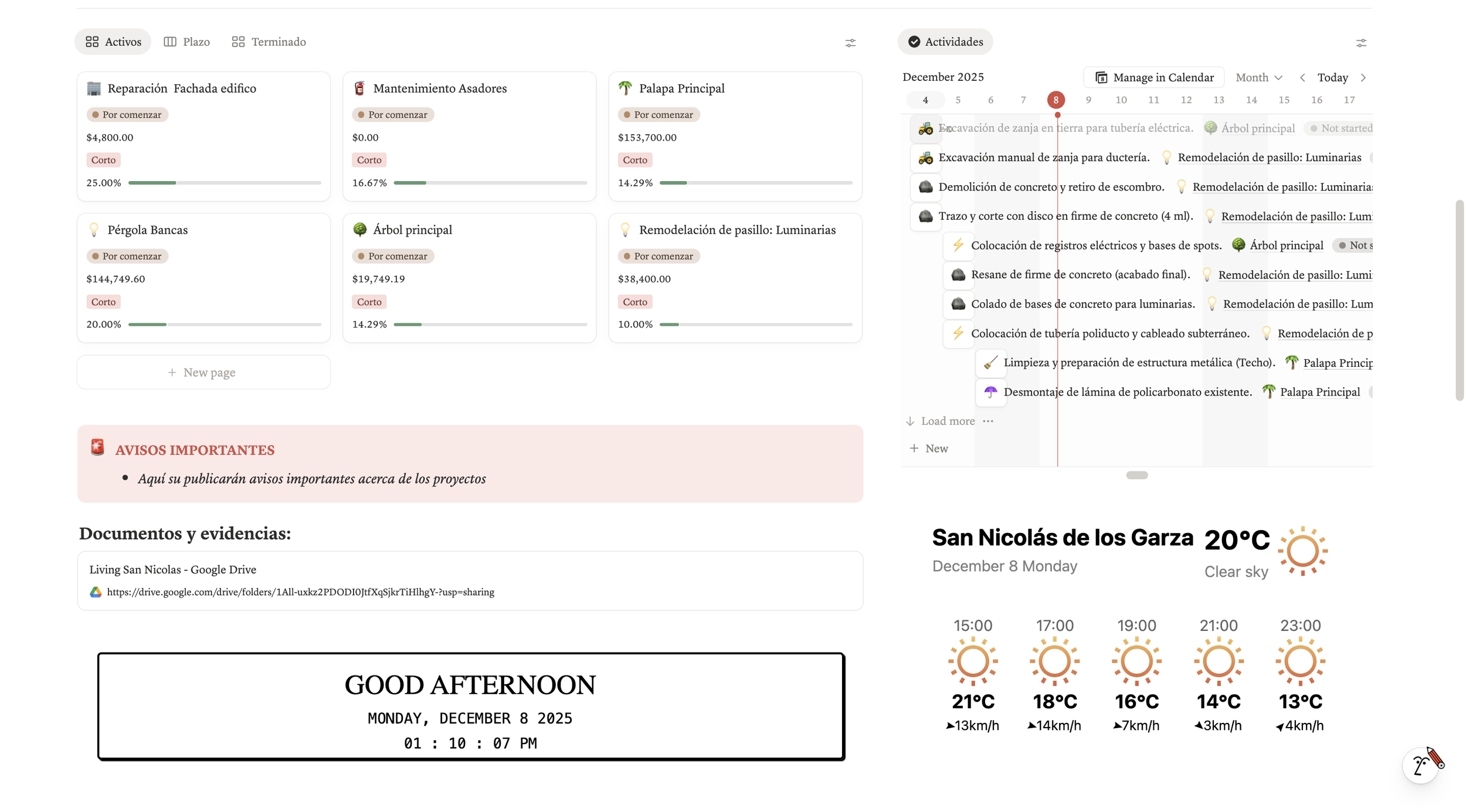En Northstone Group eliminamos la incertidumbre. A través de nuestro portal exclusivo, usted tiene acceso total al corazón de la obra. Monitoree en tiempo real bitácoras de campo, cronogramas de ejecución, reportes fotográficos de avances y el estatus total de su proyecto, garantizando una transparencia total desde el primer metro cuadrado hasta la entrega final.